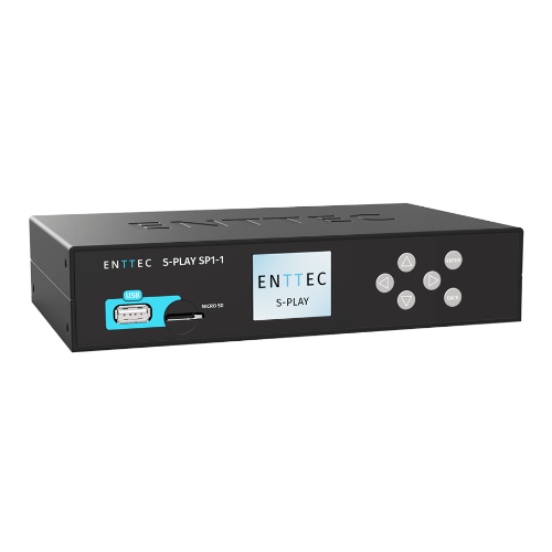 The ENTTEC S-Play SP-1 is a versatile smart show recorder and playback controller, ideal for automated light shows and complex projects. It allows you to create, record, schedule, and trigger light shows, video, and more, all from a single device. With 32-universe DMX recording, custom web interfaces, and a built-in effects generator, it’s easy to use and offers professional results without requiring expert knowledge. Install it anywhere with flexible mounting options and enjoy seamless, multi-show playback.